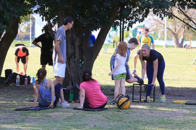 Pero también otros gimnasios, en este caso de Paraná, comenzaron a ofrecer clases en espacios al aire libre, como parques y plazas de barrios, a fin de mantener el lazo con sus socios, que pueden ejercitarse en condiciones seguras y con protocolos en el marco de la pandemia.