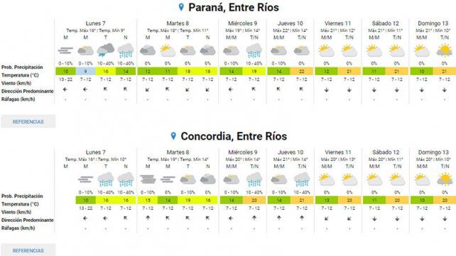 Según el último informe emitido por el Servicio Meteorológico Nacional (SMN) para este lunes en Paraná se espera una temperatura mínima de 9 y una máxima de 16. Será el día más frío de la semana porque ya desde el martes 8 las mínimas y máximas comenzarán a elevarse.