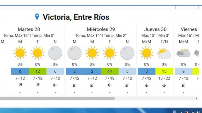 Los registros máximos para este martes en Entre Ríos oscilarán entre los 12 y 13 grados. El miércoles serían algo superiores.