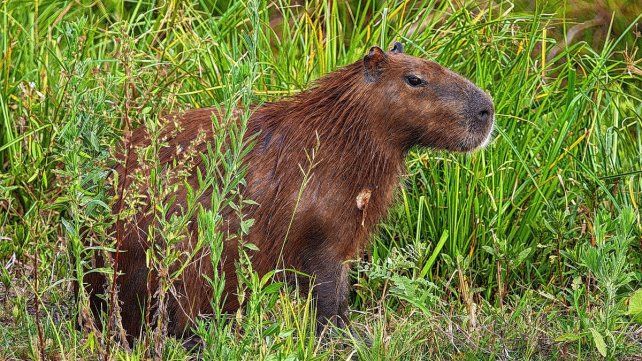 En la página Argentina.gob.ar se explica que el carpincho es un animal anfibio. Un ejemplar adulto pesa alrededor de 55 kilos, y llega a medir más de un metro de largo y entre 50 y 62 centímetros de altura.