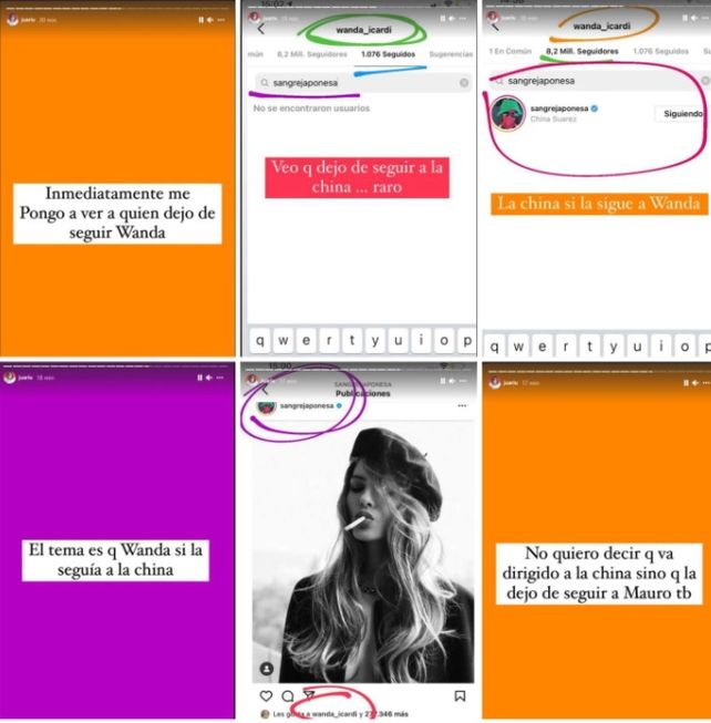 Fue entonces que Vicky Braier, más conocida como Juariu, la experta en rastrear detalles en los perfiles sociales de los famosos, mostró que hacía siete horas Wanda le puso un like a la China en un publicación donde bailó con Amancio en brazos. Sin embargo, ya no la sigue. La expanelista de Bendita además demostró que el jugador del PSG también le ha dejado likes a la actriz argentina en varias oportunidades, pero tampoco figura entre sus followers.