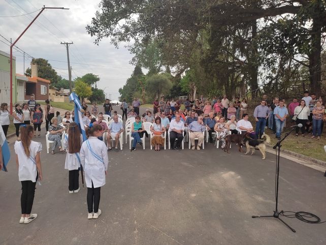 Los festejos de los 110 años de Tezanos Pinto comenzaron el acto protocolar desarrollado en una esquina del pueblo, ahora denominada Lionel Messi y Diego Armando Maradona. Allí, las autoridades locales descubrieron la cartelería inaugurando así oficialmente la nominación de todas las calles del pueblo, que ahora portan los nombres de deportistas argentinos.