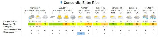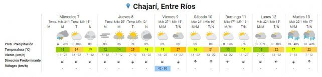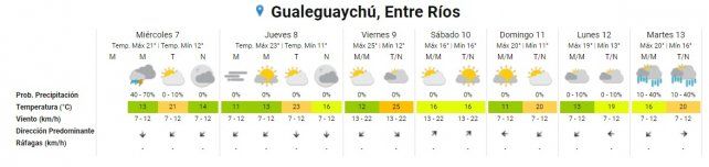 Para el fin de semana se espera un clima similar. El sábado estará parcialmente nublado en todo Entre Ríos y no parecerá un día invernal, con una mínima promedio de 16°. Sí mermará un poco el "calor" ya que bajará la máxima a 21°.
