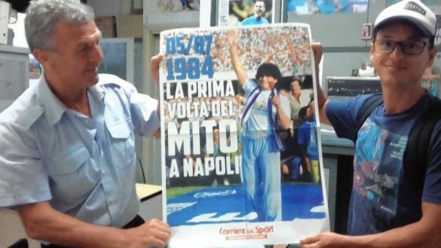 Le pedí ingresar para ver con más precisión ese “museo” y por ser argentino me abrió la puerta de ingreso entusiasmado. “Soy Carlo” me dijo y su hijo ¿adivinen como se llama? Me señalaba cada foto con rigurosidad en cada fecha y a medida que se extendía la charla entraba en confianza. A tal punto que le pregunté si podía hacer un video y que me cante el himno de los napolitanos así me quedaba ese registro en el teléfono. “O mamma, mamma, mamma, o mamma mamma, mamma ¿sai perché mi batte il cuore? Ho visto Maradona, ho visto Maradona, eh, mamma, innamorato son (oh mamá ¿Sabés porque me late el corazón? He visto a Maradona, he visto a Maradona, oh, mamá, enamorado estoy)”, cantó emocionado.