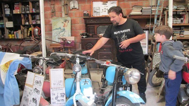 Vicente recibió a UNO en su taller, donde están acomodados con minucioso criterio los elementos de su colección, y contó: “Estamos en el lugar donde guardamos todos estos tesoros, que son las motocicletas que hemos ido recolectando durante más de 20 años y se fueron sumando a estas motocicletas algunos objetos como balanzas de época, máquinas de fotos, equipos de audio y un montón de cosas. Hace tiempo empezamos a darle un formato de museo. La intención es preservar para nuestra familia todo esto y también compartirlo con la sociedad”.