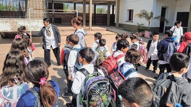 En el patio. Nancy tiene a su cargo la dirección de la Escuela Nº1 Gregoria Matorras de San Martín.