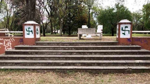 Un cadete, un empleado de un taller de pintura y un cobrador, todos de entre 28 y 36 años, caminaron unas pocos metros desde las casas de dos de ellos, ingresaron al parque Enrique Berduc y escribieron con pintura negra “SIEG HEIL”, “HEIL HITLER”, “SS” y “FUCKING JUDEN”, cruces esvásticas y una estrella de David tachada con una cruz; en un tanque de agua, en un portón del gimnasio, en las paredes de los baños y en los laterales de la cancha de paddle. El último día de febrero de 2016, año bisiesto, alguien llamó por teléfono a la Comisaría Octava y avisó de la existencia de estas pintadas nazis.