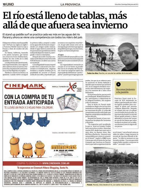En 2014 trajo desde Brasil dos tablas de Stand Up Padle y armó la escuela en Paraná. Ahora se prepara para medirse, por segunda vez, con los mejores del planeta.
