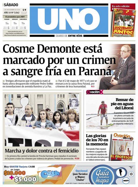 La primera nota en Diario UNO fue directa a la tapa.