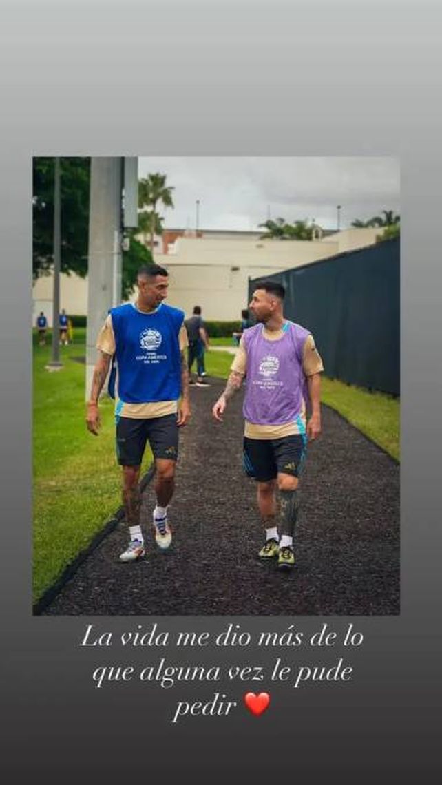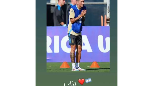 “1 día”, fue el primer comentario que hizo Di María en una de sus historias en la red social Instagram con una foto sonriendo en la práctica del sábado. La frase, acompañada con un corazón y la bandera de Argentina, hace alusión a la cuenta regresiva para que vista por última vez la camiseta celeste y blanca.