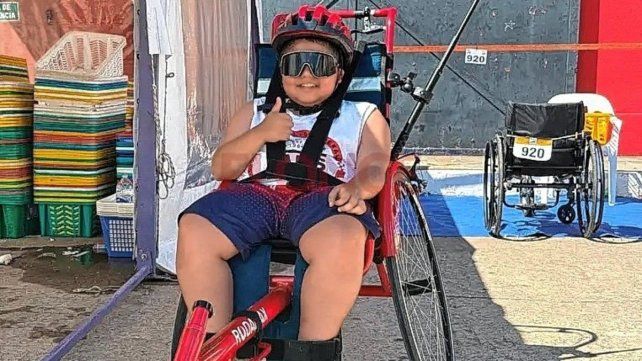 El niño, de 13 años, cumplió el sueño de participar el sábado del Triatlón Internacional de La Paz para concientizar sobre la enfermedad de Duchenne