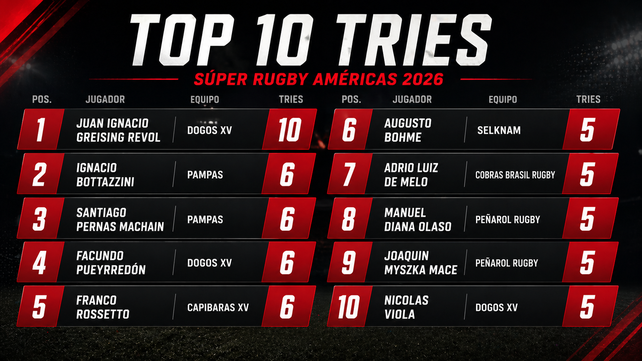 El Súper Rugby Américas continúa su desarrollo con una intensa lucha tanto en la tabla de posiciones como en los rankings individuales, donde Rossetto ya se posiciona como uno de los nombres a seguir en el cierre de la temporada 2026.
