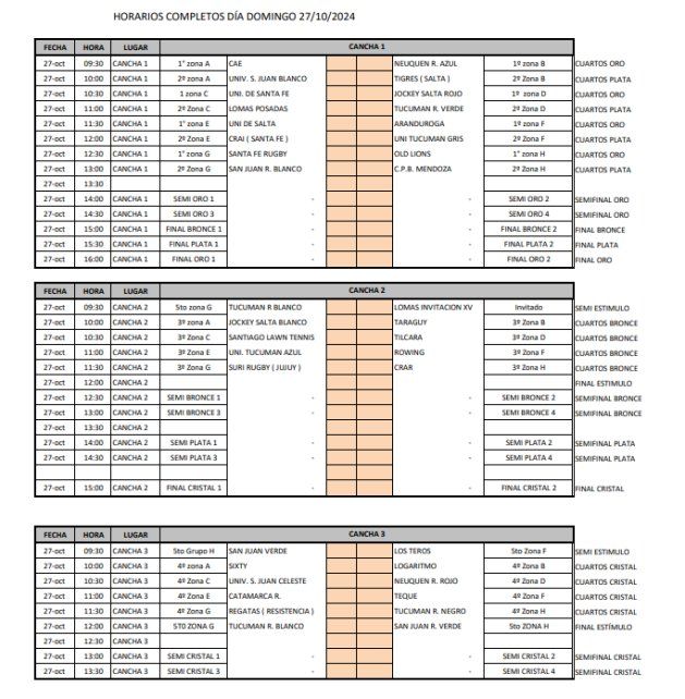 En la jornada de este domingo los partidos finales tendrán lugar a la tarde ya sea Copa de Oro, Plata, Bronce y Cristal. Los equipos este sábado se clasificaron para jugar cada una de las definiciones de la presente edición.