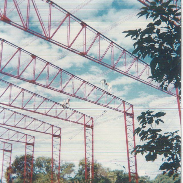 La secuencia de imágenes fue tomada entre el 4 y el 16 de marzo de 1991 y retrata paso a paso el montaje de la estructura metálica que luego daría forma al gimnasio cubierto de la sede central.