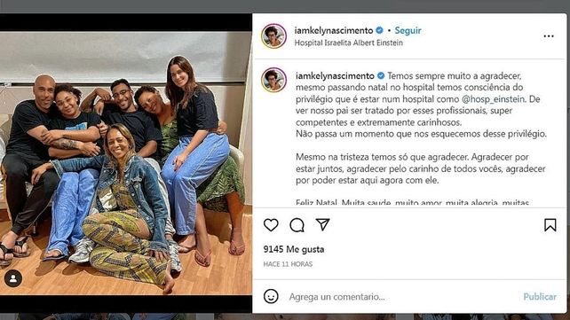 “Incluso pasando Navidad en el hospital tenemos consciencia del privilegio (...) de ver a nuestro padre ser tratado por esos profesionales súper competentes y extremadamente cariñosos”, señaló Kely en su último posteo.