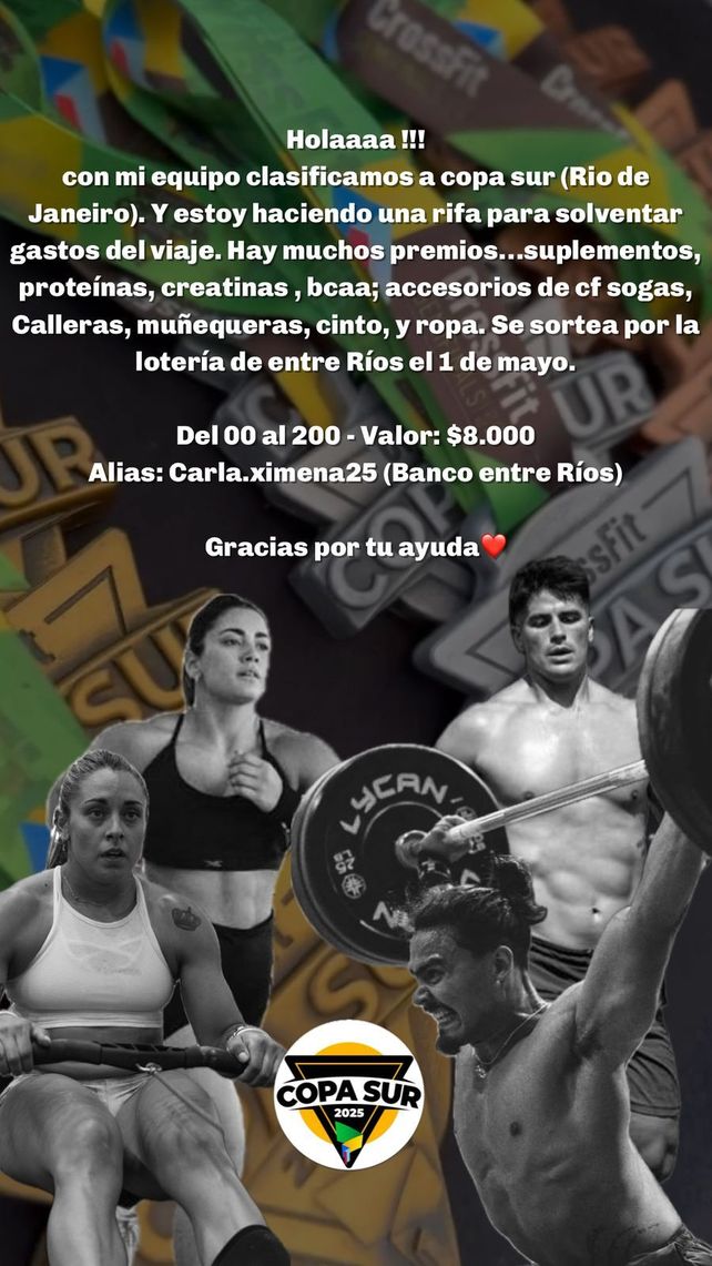 La crossfitera paranaense Carla González y su equipo competirán en la Copa Sur 2025 (Río de Janeiro). Para cubrir los costos de su viaje, organizó una rifa.