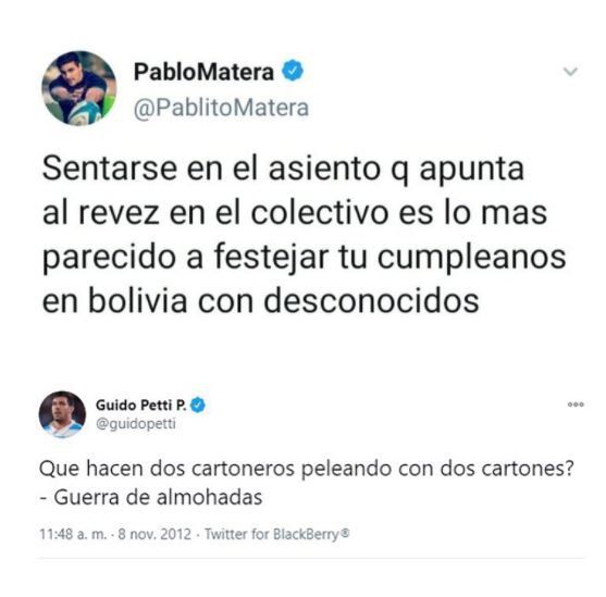 El mensaje de Los Pumas no tuvo el efecto esperado y unos minutos después comenzaron a circular en las redes viejos mensajes escritos por Matera con un fuerte contenido discriminatorio.