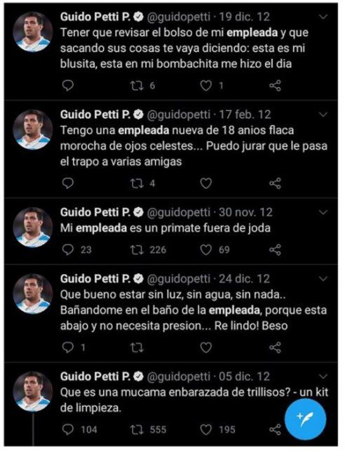 Mensajes igualmente repudiables fueron recuperados de los perfiles de Guido Petti, Mayco Vivas y Santiago Socino, otros tres miembros del plantel argentino.