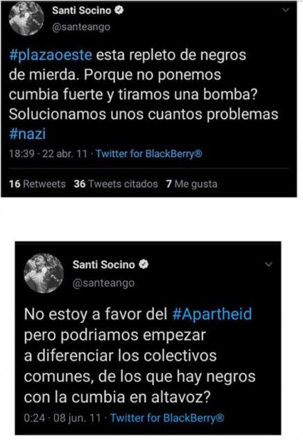 Los mensajes racistas de Matera Petti y Socino