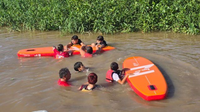 Ayer en la zona de la dársena del puerto paranaense se realizó una capacitación sobre rescate acuático, primeros auxilios y RCP, dictado por guardavidas para alumnos de las escuelas canotaje y SUP.