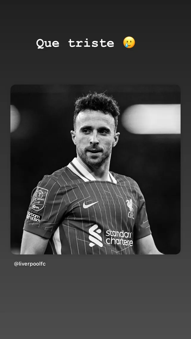 Así como Cristiano Ronaldo lamentó el fallecimiento del jugador portugués, Dibu Martínez también expresó sus condolencias a través de su cuenta oficial de Instagram. El ídolo de la selección argentina enfrentó a Diogo Jota en el torneo inglés y compartió el anuncio de Los Rojos.