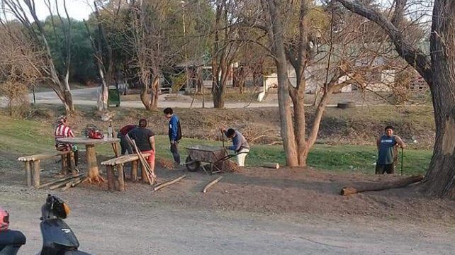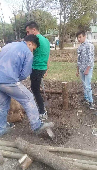 Con herramientas propias limpiaron el lugar, plantaron árboles y fabricaron mesas y bancos de madera.