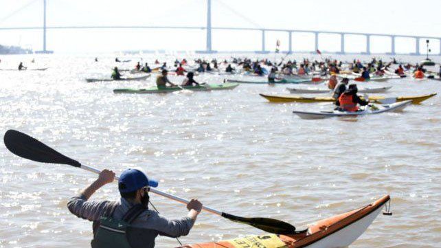 La Multisectorial, espacio que organizó semanas atrás distintos cortes en el Puente Rosario-Victoria por la ley de humedales, llamó a la movida de este mediodía como una "Unión de las orillas". Esto es, conformar un cordón de embarcaciones a remo como unión de las costas entrerrianas y santafesinas. Unir simbólicamente a ambas provincias en un grito común contra las quemas.