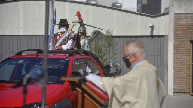 En el interior del espacio público ubicado sobre calle Buenos Aires, entre Ecuador y Carlos Gardel, los fieles se reunieron en torno al altar y la imagen del santo patrono.