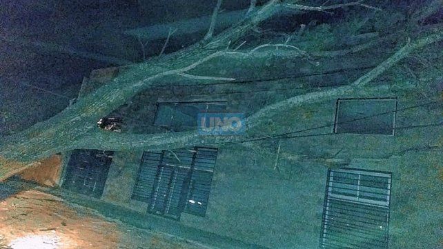 Según imágenes enviadas a UNO por vecinos de la ciudad, en avenida Zanni y Balbin un añejo álamos cayó sobre un edificio, mientras que en calle Andrés Pazos, antes de La Rioja una enorme rama de otro ejemplar se desplomó producto de las fuertes ráfagas y dañó automóviles estacionados.
