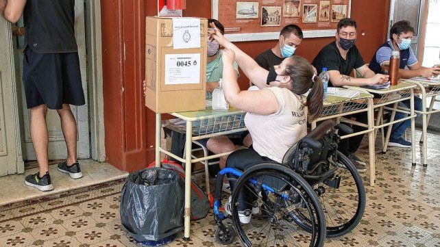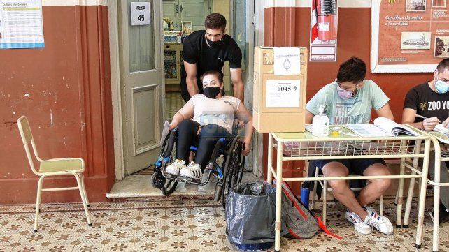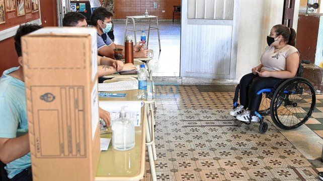 En el colegio Mercedarias de Paraná, una mujer en silla de ruedas fue ayudada por un acompañante para ingresar al cuarto oscuro y una vez que salió con su voto preparado, con dificultad logró introducir el sobre en la urna, la cual se encontraba a más altura de lo que le hubiera resultado cómodo y accesible.