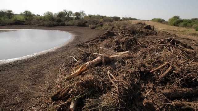 Con los restos del bosque nativo armaron un pequeño terraplén al borde de la la laguna.