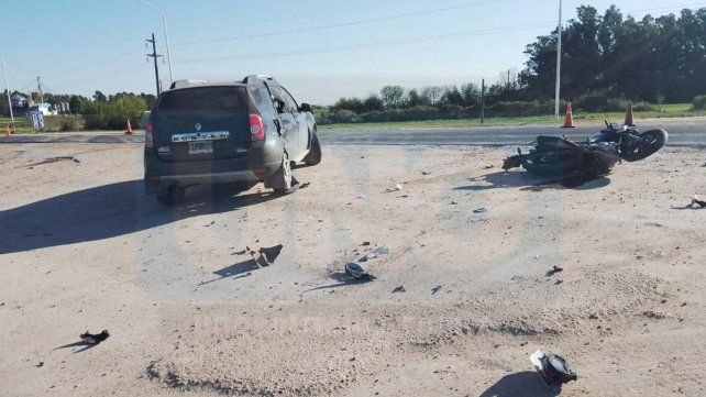 Un grave accidente ocurrió este jueves en la Ruta Nacional 12 (RN12) en el acceso a Colonia San Rafael, en cercanías de Crespo, cuando una camioneta Renault Duster chocó contra una moto en la que viajaban dos motociclistas.