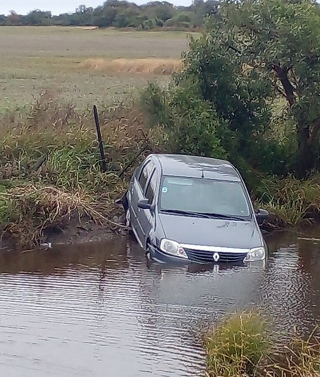 Personal de la dependencia policial fue advertido, mediante un llamado telefónico, sobre el despiste de vehículo Renault Logan que se encontraba sobre la banquina oeste de ruta nacional Nº 12 con la trompa en el agua.