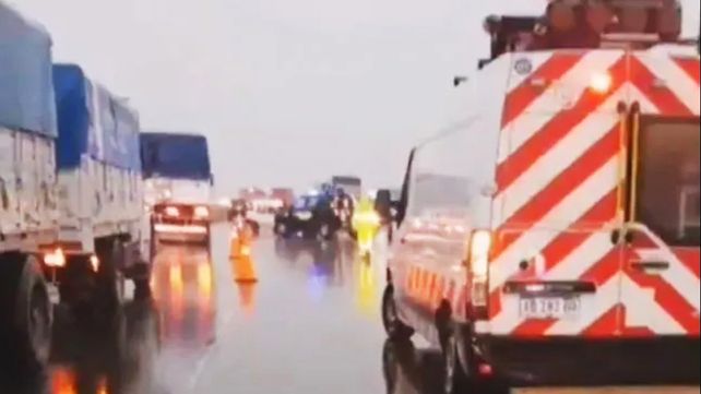 La información oficial indica que chocaron tres camiones y una persona perdió la vida en el lugar. El hecho se produjo sobre el kilómetro 18, en medio del fuerte temporal que azotó la región.