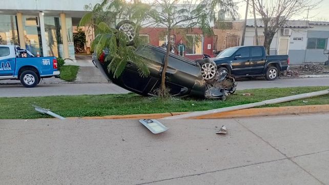 Por motivos que se investigan el conductor de un Fiat Palio, un joven de 34 a los domiciliado en esa ciudad, perdió el control del vehículo que quedó con sus cuatro ruedas hacia arriba sobre el cantero central de la avenida, luego de una chocar columna de alumbrado público.