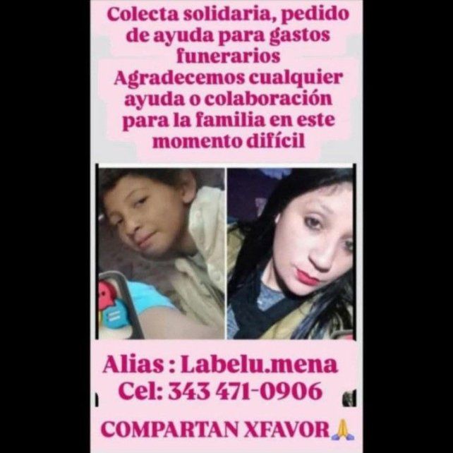 Ante la difícil situación económica que atraviesa la familia y los altos costos que implican los servicios funerarios, se difundió en redes sociales un pedido de colaboración destinado a reunir fondos para el velatorio.
