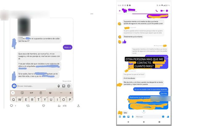 Otra relató una situación similar: “Yo fui un tiempo ahí y me había dicho que tenía ataduras en los ovarios, que el me lo iba a ‘curar’. Me decía que no sea desconfiada y que me concentre. Me tocó sin mi consentimiento, diciendo que para cortar las ataduras tenía que hacerlo y era parte de la supuesta terapia. Cuando quise acordar tenía su miembro afuera, le dije que no quería seguir y me fui. Tiempo después me mandaba mensajes diciendo que él iba a dar lo que fuera por mi tiempo y por mí. Nunca me animé a contar nada por vergüenza y por sentir que yo tenía la culpa, hasta que vi tu publicación”. A.P.L compartió muchos mensajes similares que le llegaron con historias igual de aberrantes, protegiendo la identidad de las personas que la contactaron.