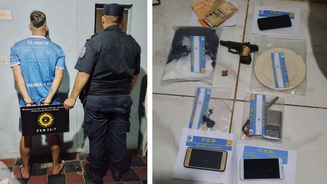Personal de la comisaría primera de la Jefatura Departamental de Policía de Concordia concretó un procedimiento por tenencia y venta de drogas en el que secuestraron dos envoltorios de nylon conteniendo con cuatro gramos de clorhidrato de cocaína, recortes de nylon, un arma de fuego, calibre .22, tipo pistola, marca BERSA, un cargador con 13 proyectiles sin percutir, una balanza de precisión, un dosificador, plato con restos de la sustancia estupefaciente, dos tijeras, tres teléfonos celulares, $52.400.