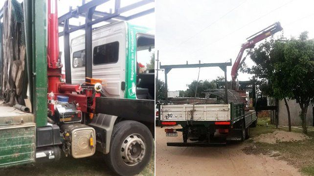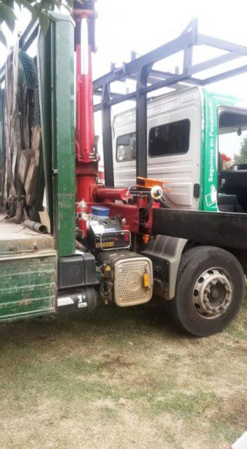 En el lugar se observó un camión Mercedes Benz con grúa (Dominio AB172IK) de la Empresa Nimat, corralón de materiales para la construcción, que estaba arriba de la vereda, con las patas de la grúa apoyadas y extendidas y cuyo brazo elevado sostenía un pallets de ladrillos cerámicos. Del lado del acompañante y próximo a los cables de alta tensión, y al lado de la rueda delantera del mismo lado, un rastro aparentemente de sangre.