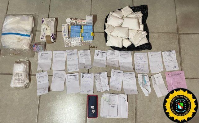 En tanto, los insumos hospitalarios hallados fueron: 18 recetarios médicos, jeringas y agujas, ampollas de medicamentos varios, tres llaves de 3 vías, un paquete de 500 kg. de algodón, veinte paquetes de gasas, cinco cajas de hierros, de 60 unidades, una bolsa cerrada de goteros con 65 unidades, 39 bolsas de diferentes medidas para residuos patológicos, dos cajas de guantes de látex, dos colchones, un paquete de guantes quirúrgicos, dos paquetes conteniendo sondas, dos botellones de agua oxigenada, una botella de alcohol en gel, un frasco conteniendo pastillas Tafirol, un jabón Asepsia, una caja de baja lengua, un termómetro, dos tijeras quirúrgicas, una pinza quirúrgica, una herramienta quirúrgica, un frasco de expectorante mucolítico, un frasco de jarabe, una caja de crema dérmica, una caja con blíster vacíos de ácido fólico, dos paquetes grandes de algodón, tres ( paquetes con gasas, seis frascos vacíos de medicamento inyectable, 16 ampollas de medicamento inyectable, tres jeringas, tres agujas para jeringa, una pomada Átomo, una caja de suplemento dietario Berocca con un tubo en su interior, blísteres con medicamentos varios en comprimidos; seis recetarios en blanco con sello del Hospital Masvernat, una tableta de medicamentos marca Gabuten de la droga Enalapril 10 mg. de 10 comprimidos, documentación varias.