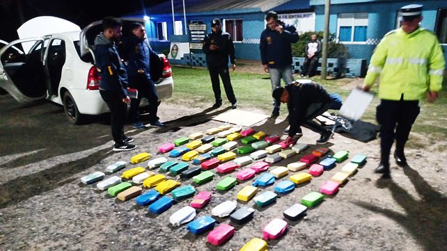 Al remover la alfombra, los policías encontraron envoltorios de diferentes colores. La requisa vehicular, con la presencia de testigos, arrojó el secuestro de 80 paquetes con una sustancia blanca envueltos con globos de piñata. La pericia confirmó que se trató de 85,49 kilos de clorhidrato de cocaína, con una concentración de 75,86%, con la posibilidad de obtener 648.565 dosis umbrales.