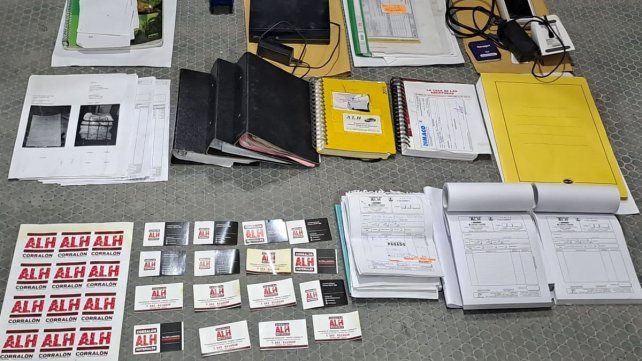 En allanamientos realizados por personal de la División Delitos Económicos, por orden de la Juez de Garantías, Paola Firpo, a pedido de la Fiscal de Investigación y Litigación, Valeria Vílchez, se decomisaron documentos que mostrarían cómo se perpetraba las estafas: recibos, pagarés, remitos, documentos no validos como factura y carpetas con documentación de ventas relacionadas al corralón. También aparatos como posnets, cámaras de seguridad, teléfonos (entre ellos el equipo al que se contactaban las víctimas) y una notebook. También secuestraron dinero en efectivo por un total de 158.460 pesos y 977 dólares, e incluso un revólver calibre 22, que fue remitido a la Dirección Criminalística de la Policía.