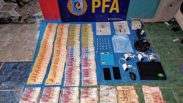 Cuando los policías irrumpieron en la casa, la mujer corrió hacia el patio y descartó una bolsa con dinero hacia el patio del vecino. Allí encontraron la suma de 350.000 pesos. En la casa había unas 35 bochitas de cocaína, una balanza, elementos que fueron secuestrados al igual que las cámaras de seguridad y el DVR donde se grababan las imágenes.