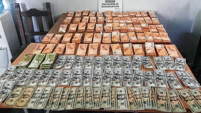 Al momento del registro documentológico y físico, los uniformados observaron en el interior del rodado billetes de moneda nacional y extranjera que se encontraban en bolsos pero a simple vista.