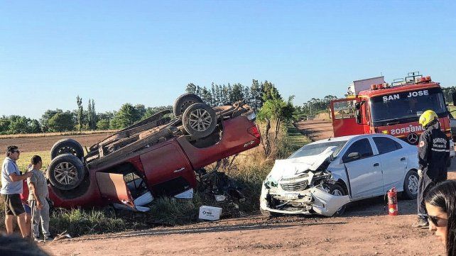 Un hombre y una mujer debieron ser hospitalizados como consecuencia de un accidente de tránsito ocurrido en la tarde del viernes en una esquina de San José, donde una camioneta volcó tras chocar con un auto.