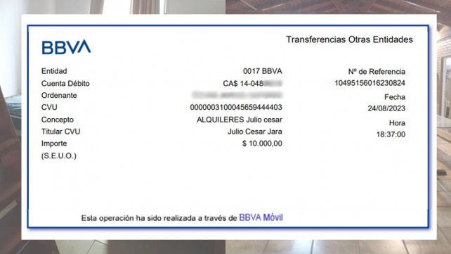Jorge, el marido de Laura, le había hecho una transferencia a modo de seña de $10.000 hace alrededor de un mes, como consta en el comprobante.