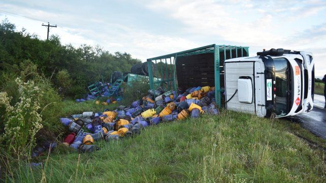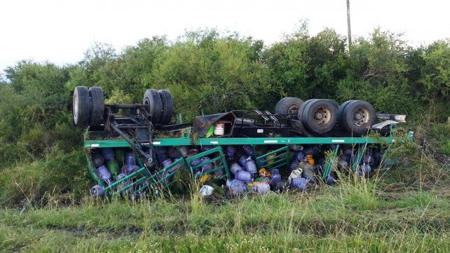 Un camión Iveco con acoplado que transportaba garrafas volcó cuando transitaba el kilómetro 80 de la ruta 22, cerca de Federal.