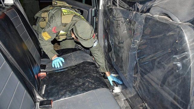 Al inspeccionar el interior del automóvil, los funcionarios de Gendarmería hallaron tres envoltorios de nylon en el suelo de la parte trasera, del lado del asiento del conductor.