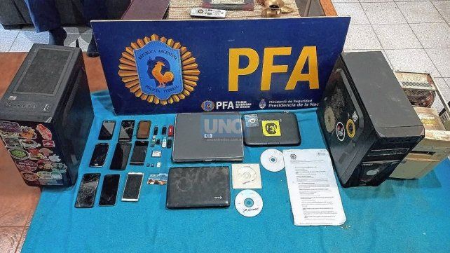 Tras un tiempo de tareas de investigación y de inteligencia, el personal de la Policía Federal fue autorizado a realizar el allanamiento que concluyó con el secuestro de siete celulares, cinco computadoras, 10 pendrive, anotaciones y dinero.