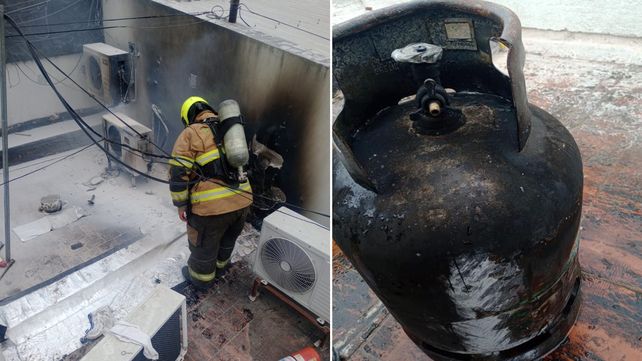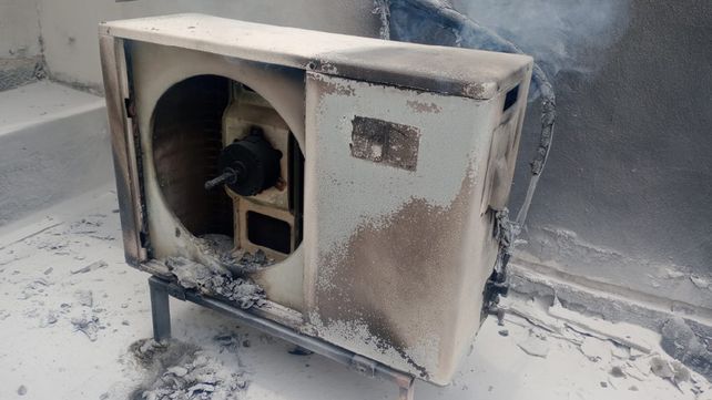Según los primeros datos el siniestro fue provocado por una garrafa con interface. Producto del fuego se vieron dañados varios equipos de aire acondicionado.